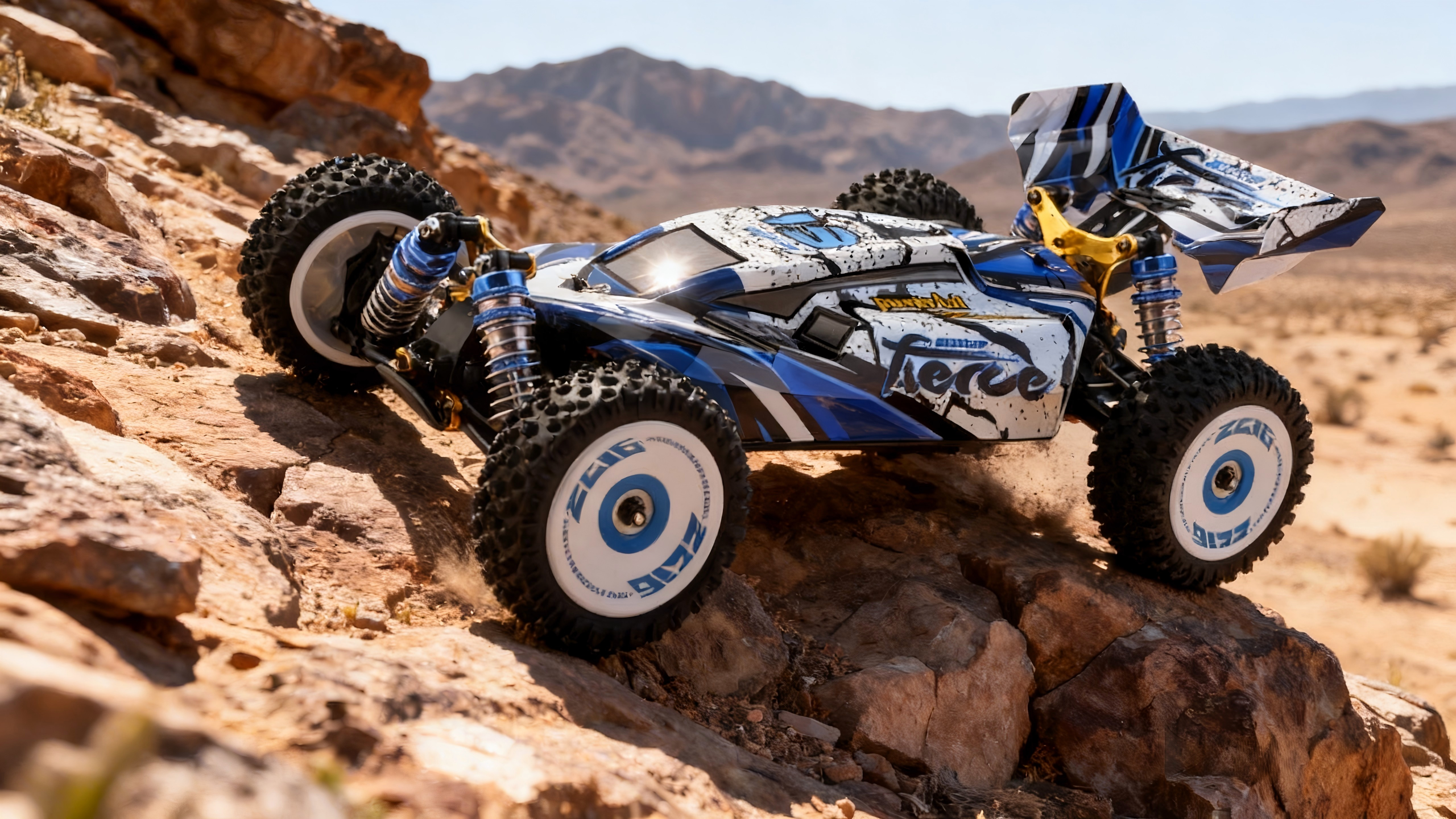 Core specs: 1/16 4WD; common 2845 ~4200Kv; oil shocks; metal gears; some kits include throttle‑limit settings and extra pinions.