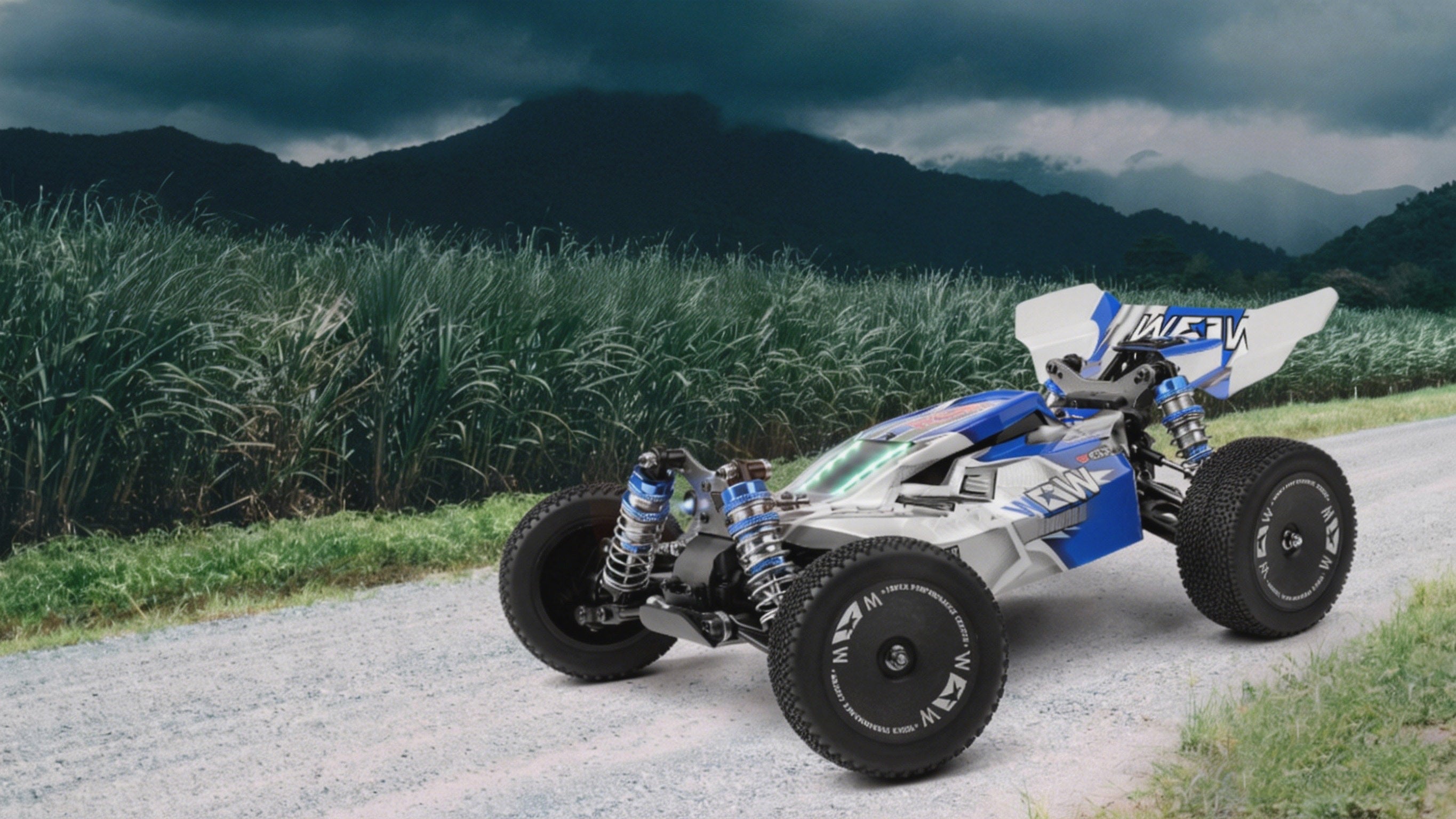 A2: It's built tough for off-road action. The full-metal chassis provides a solid foundation, while the five oil-filled shock absorbers help soak up impacts from jumps and bumps, making it highly durable for aggressive driving.