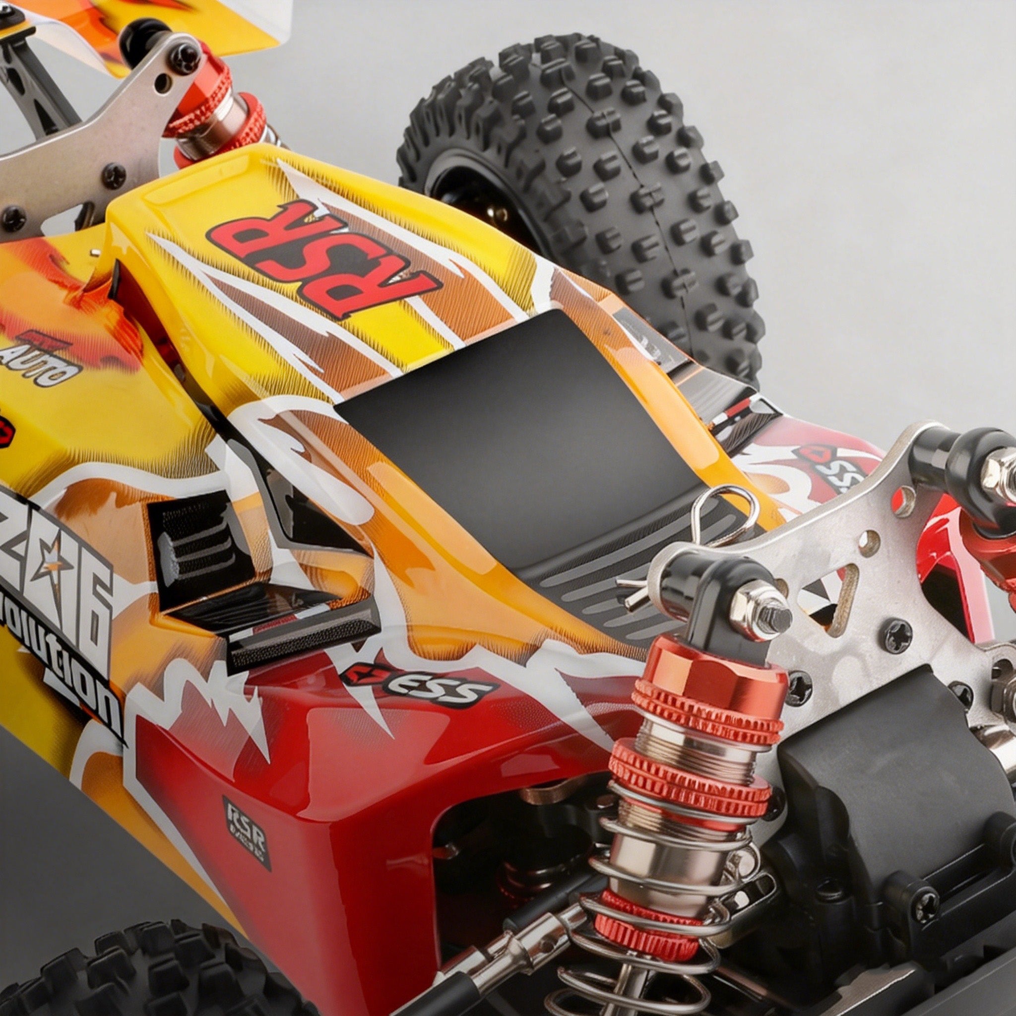 A2: Extremely durable. It's built with a full-metal chassis, metal oil-pressure shocks, and zinc alloy gears to withstand the rigors of off-road driving, jumps, and crashes common in Racing & Competition.