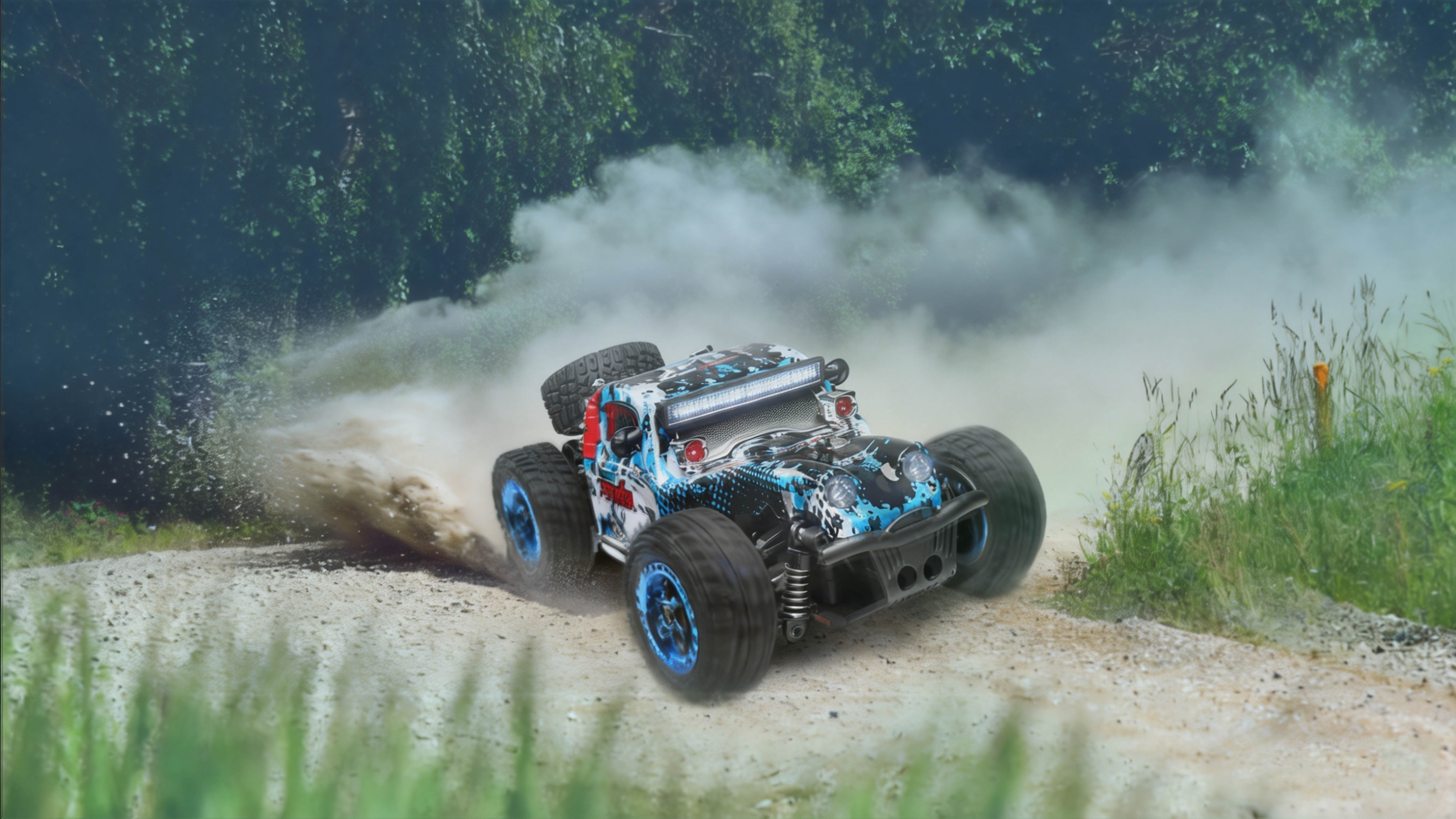 A1: Yes, its 4WD, high-speed motor, and all-terrain rubber tires are designed for challenging surfaces. The independent suspension helps absorb shocks from rocks, dirt, and gravel, making it a capable off-road explorer.