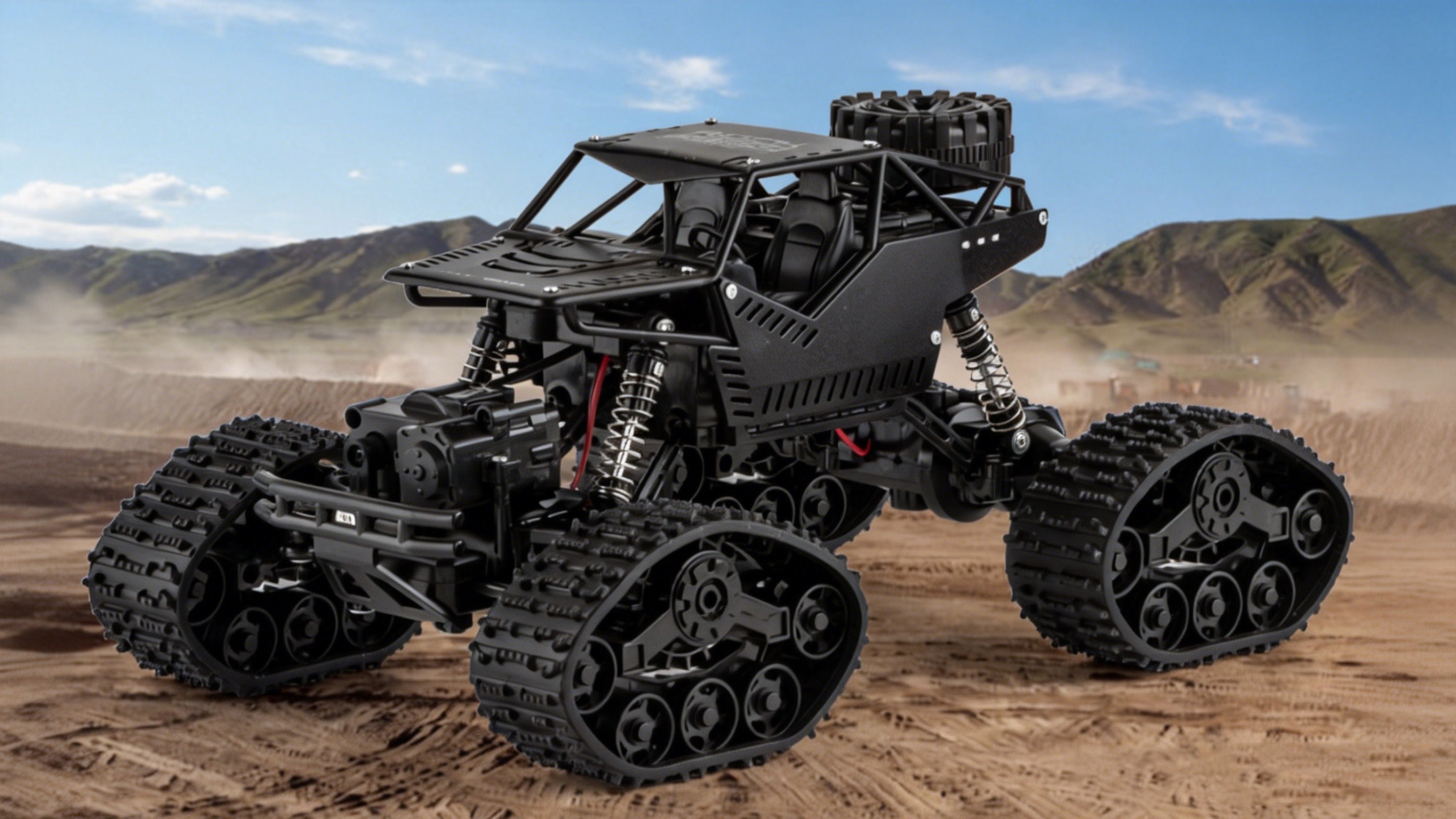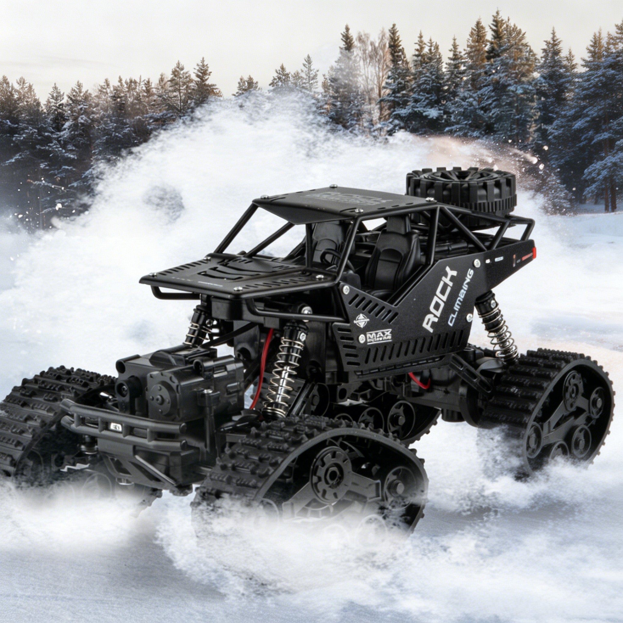 A1: It‘s designed as a true cross-country rock climbing vehicle. Key features include upgraded simulated tank-tracked wheels for superior grip, a powerful 4WD system, and a four independent suspension shock absorber system that allows each wheel to tackle bumps independently, easily handling rocks, roots, and uneven ground.